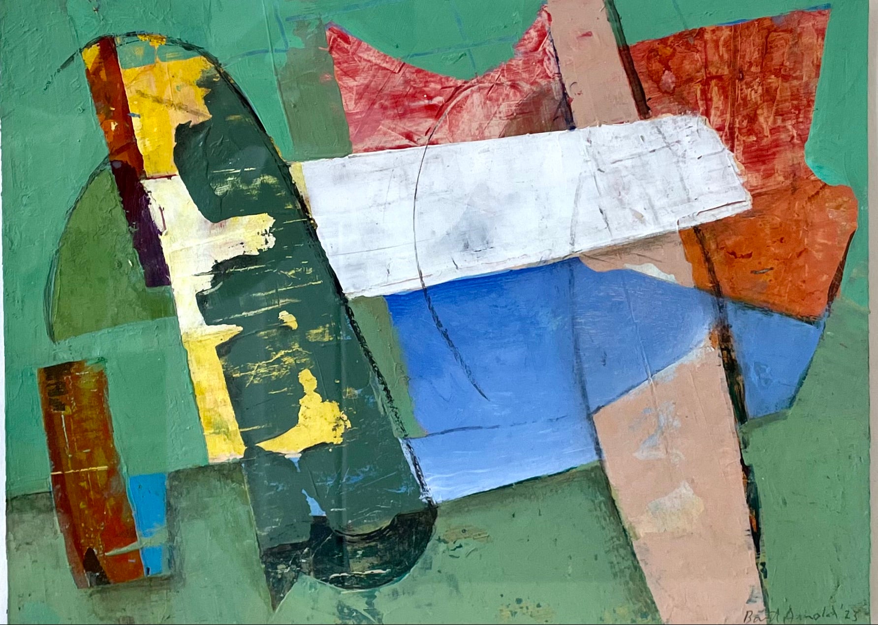 Bart Arnold is perhaps best known as an abstract painter and jewelry artist whose work combines clean lines with complex textures, colors, and/or patinas. He established his style as a non-objective painter while living in New York City working toward his MFA at NYU, and has been developing it for the past four decades. Arnold also works occasionally in a realist mode, painting scenic mural commissions and making drawings and watercolors of scenes and objects.