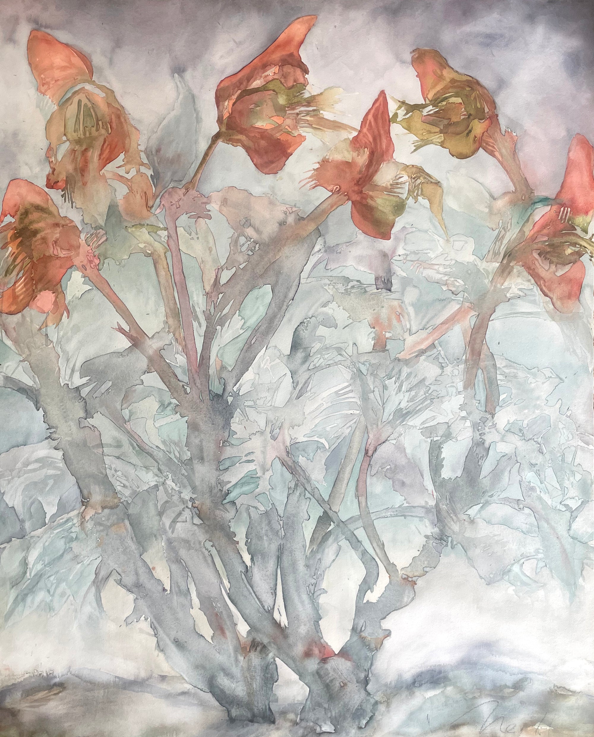 Nature has long been the subject of Christine Neill's large mixed-media paintings. She grew up in New England and after initially studying Biology at Skidmore College, graduated with a BS in Art She found it was a natural transition from the examination of living things in a lab to visualizing those processes as imagery in paintings and prints. She dates her interest in the effects of climate conditions to early studies of biotic habitats. She earned a MFA at MICA’s Hoffberger School of Painting, where she studied with Grace Hartigan.
