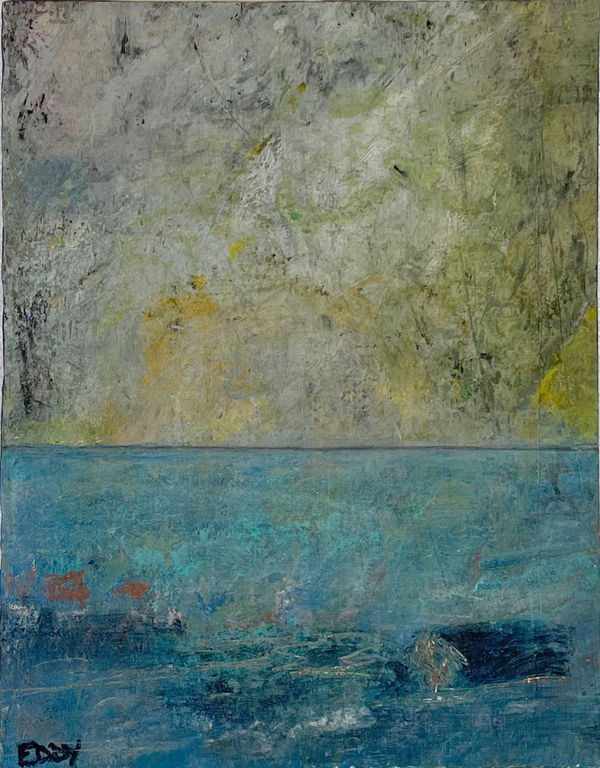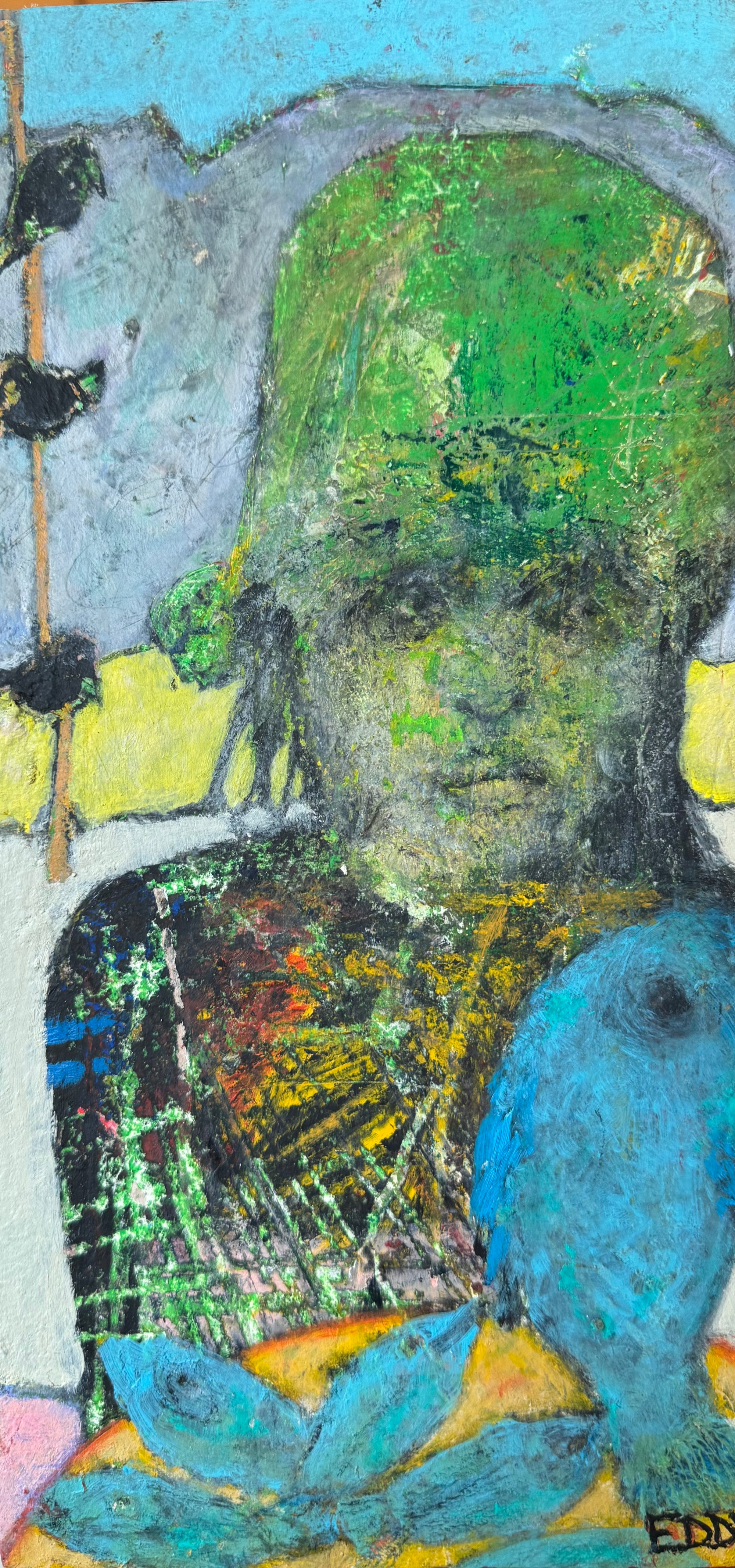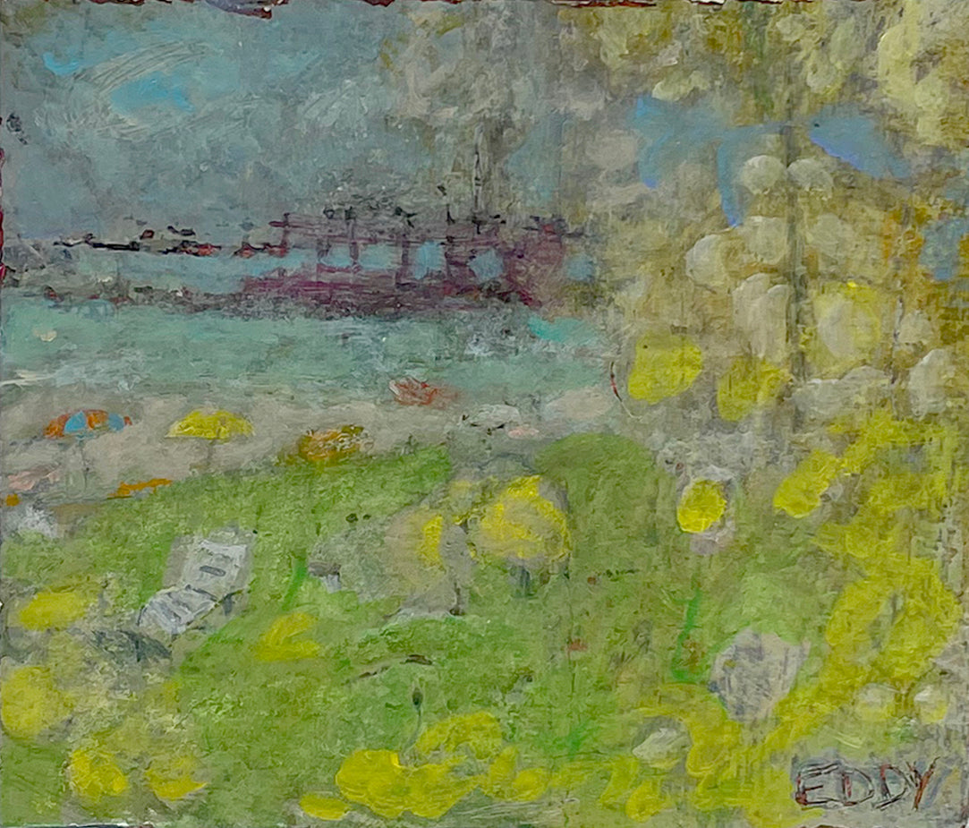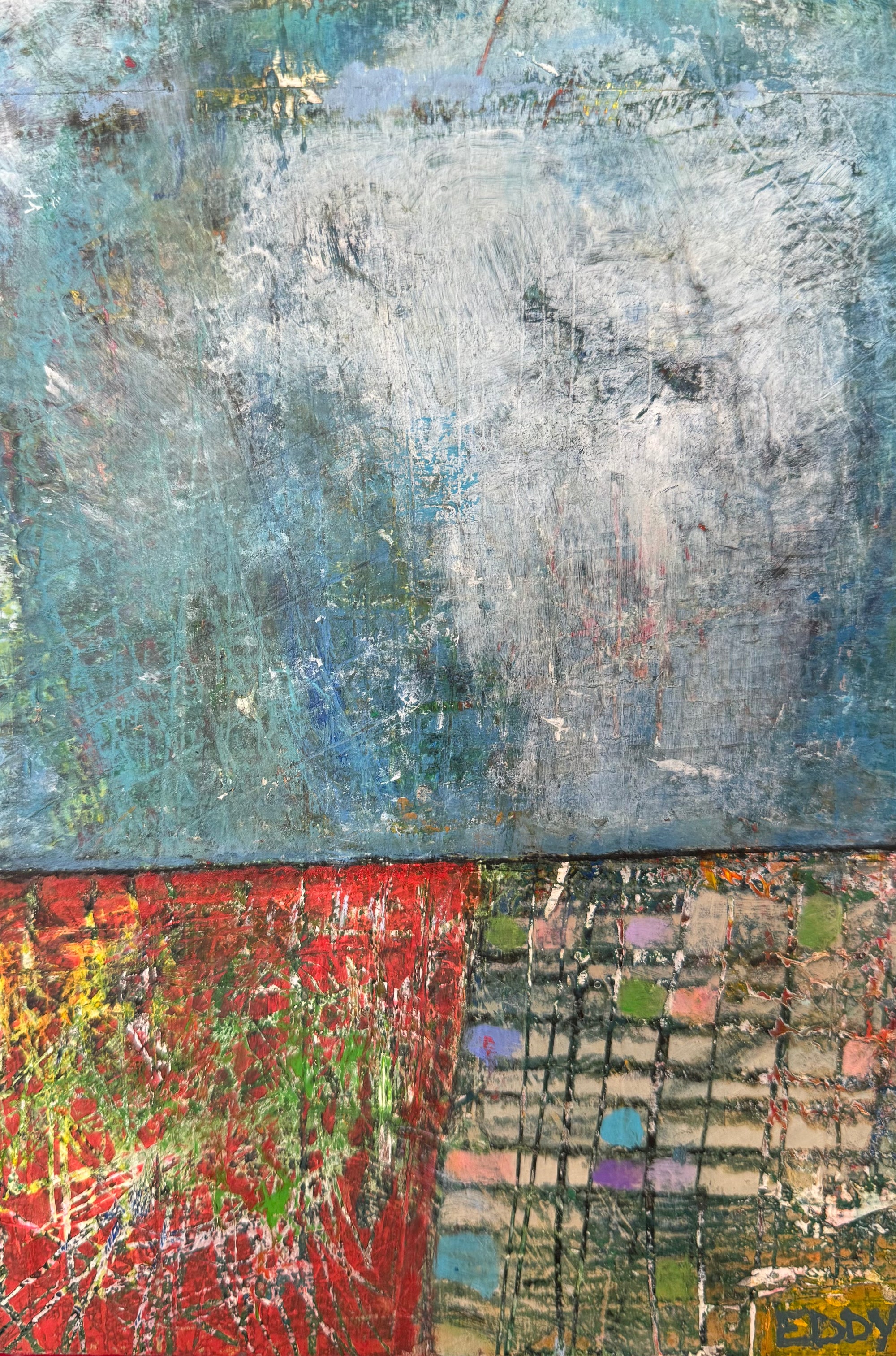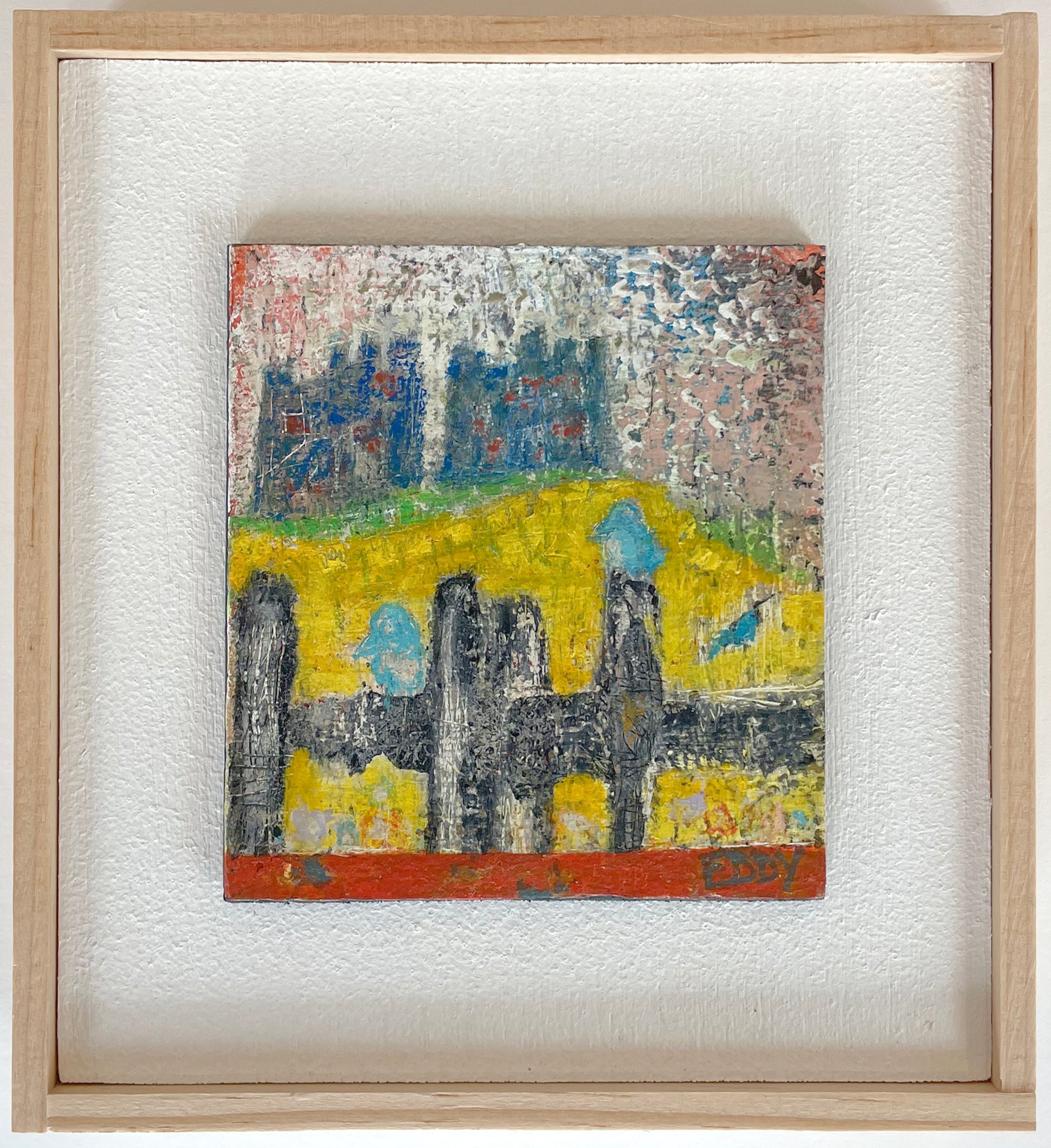 Eddy's work is wild and wonderful, haunting and imaginative, managing to make portraits that are sweet and somewhat eerie at the same time. Self taught, he pours a palpable raw energy into his painting-often chasing after images that reveal themselves during the creative process. Delightfully unique faces peer out at the viewer and areas of dazzling yet subdued color show through his scrapings and burst into life across the picture plane.