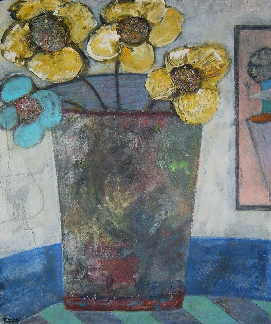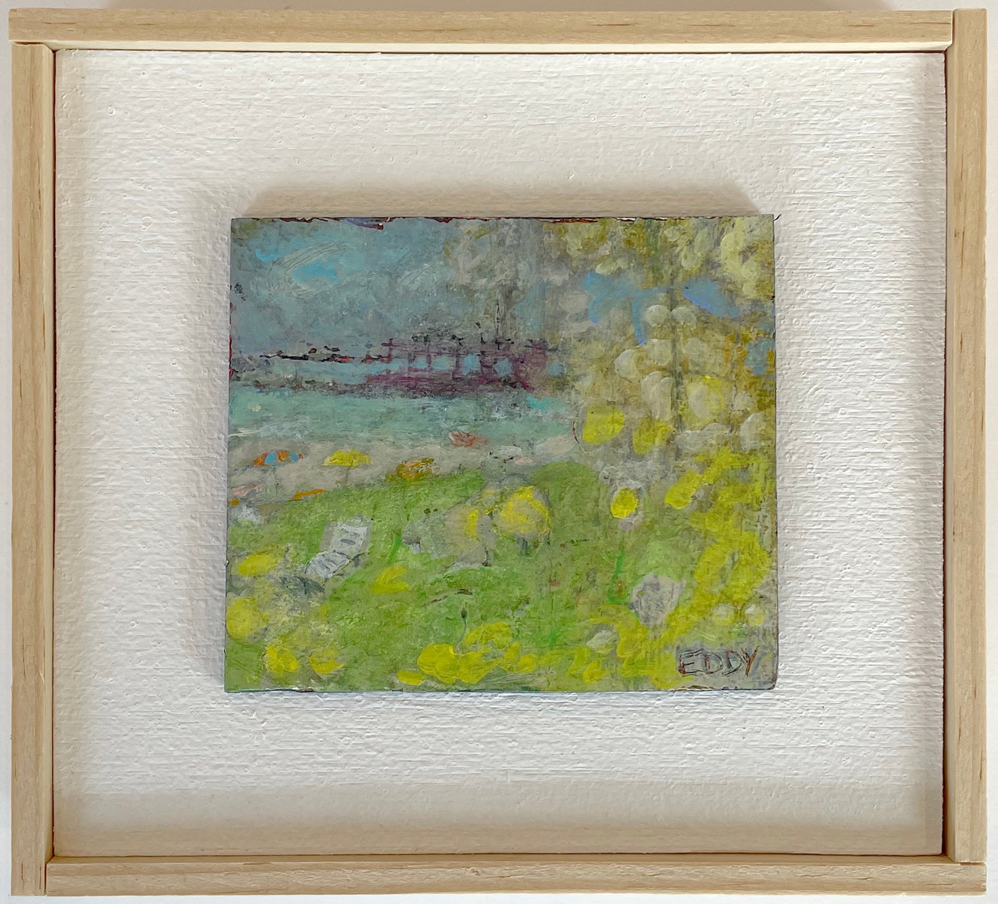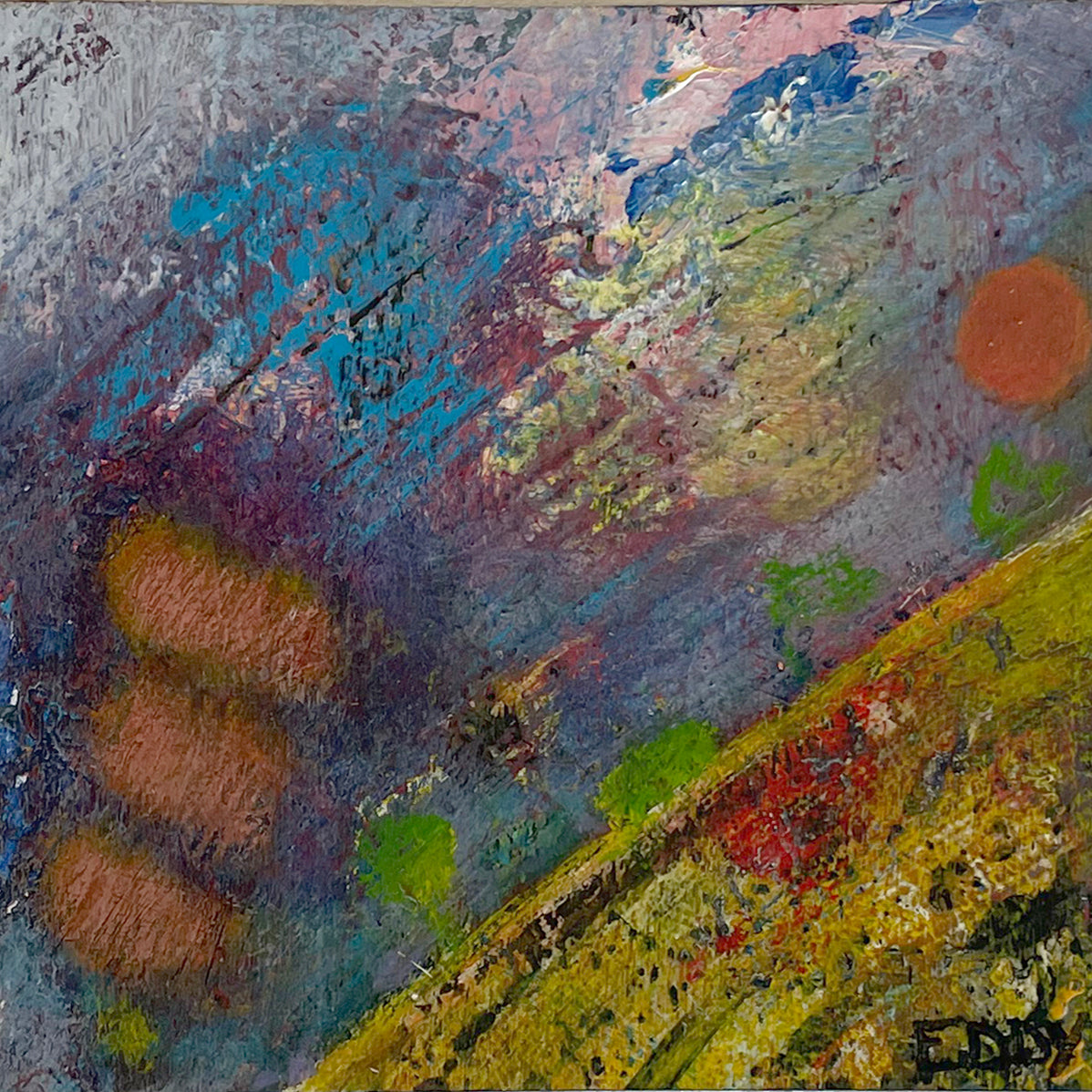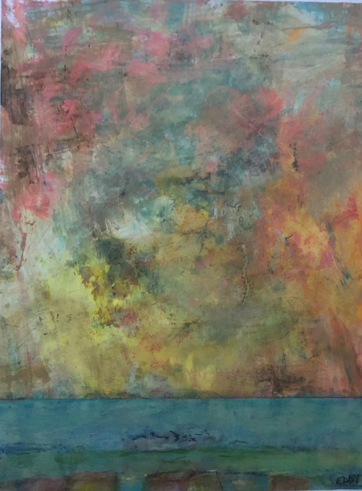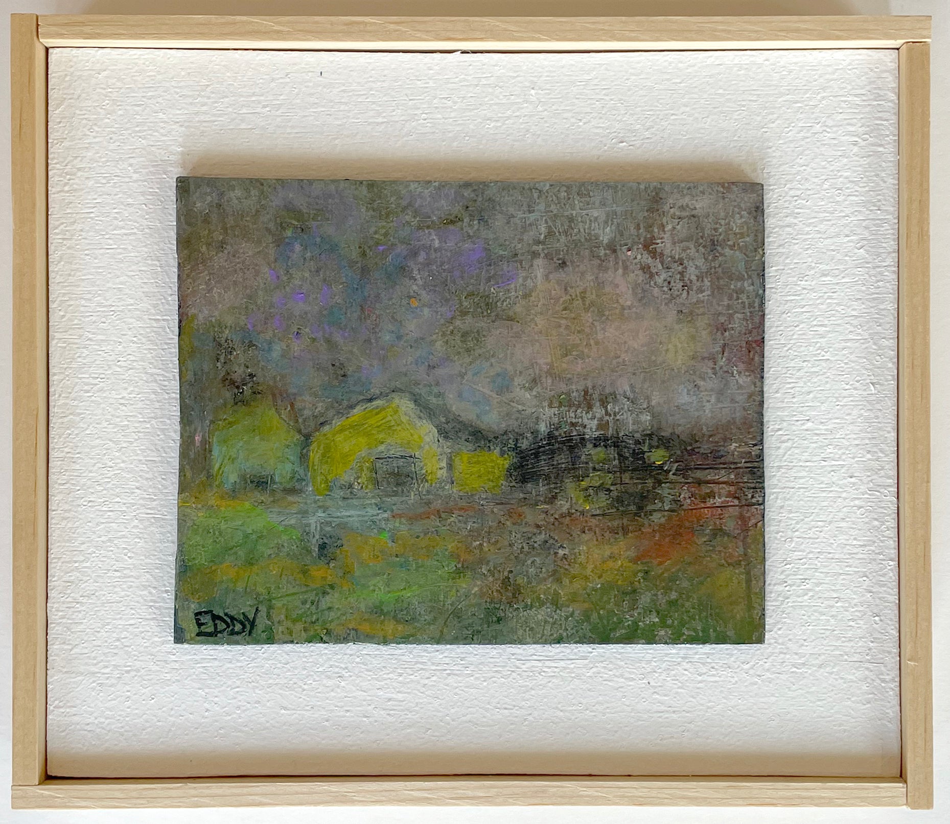 Eddy's work is wild and wonderful, haunting and imaginative, managing to make portraits that are sweet and somewhat eerie at the same time. Self taught, he pours a palpable raw energy into his painting-often chasing after images that reveal themselves during the creative process. Delightfully unique faces peer out at the viewer and areas of dazzling yet subdued color show through his scrapings and burst into life across the picture plane.