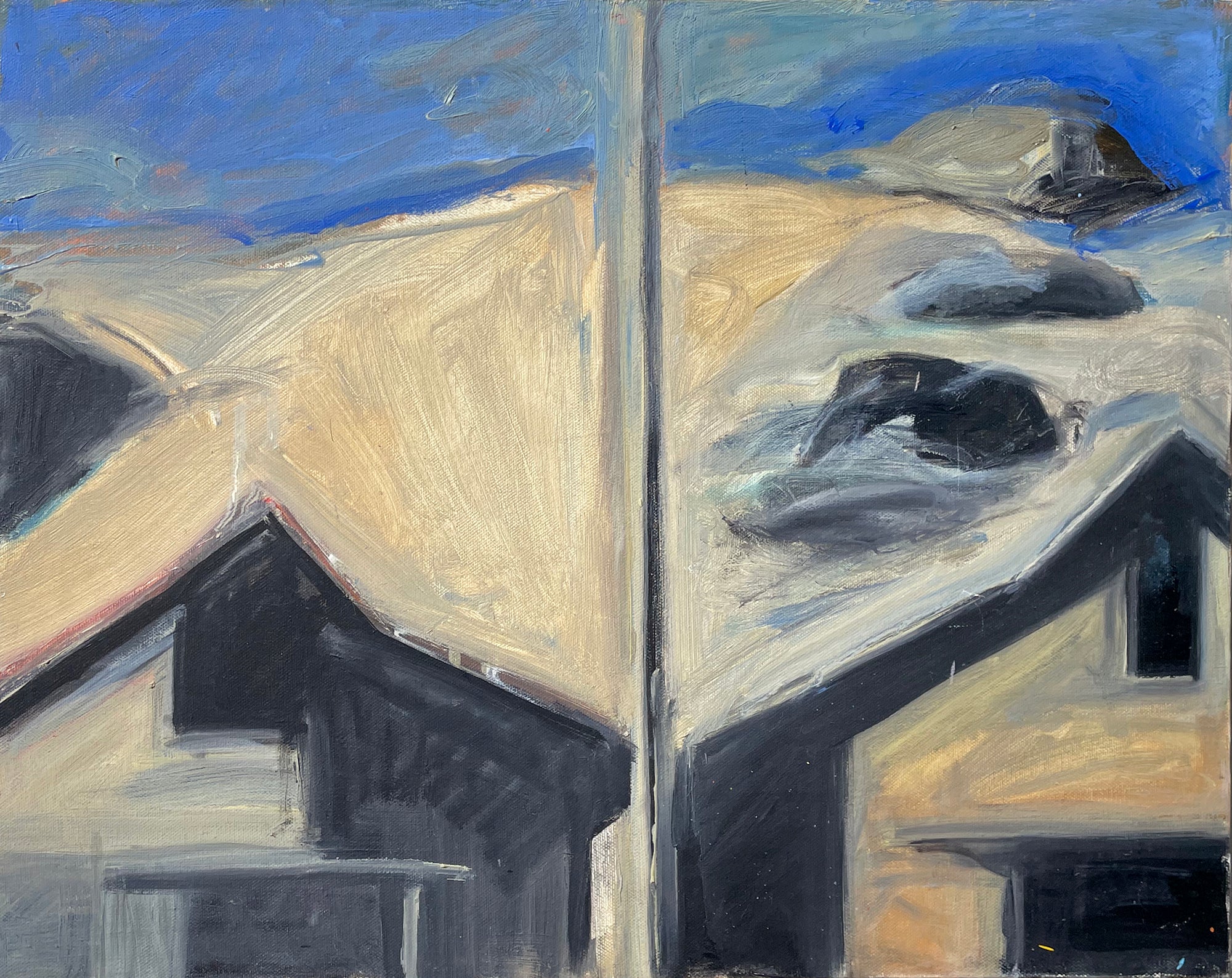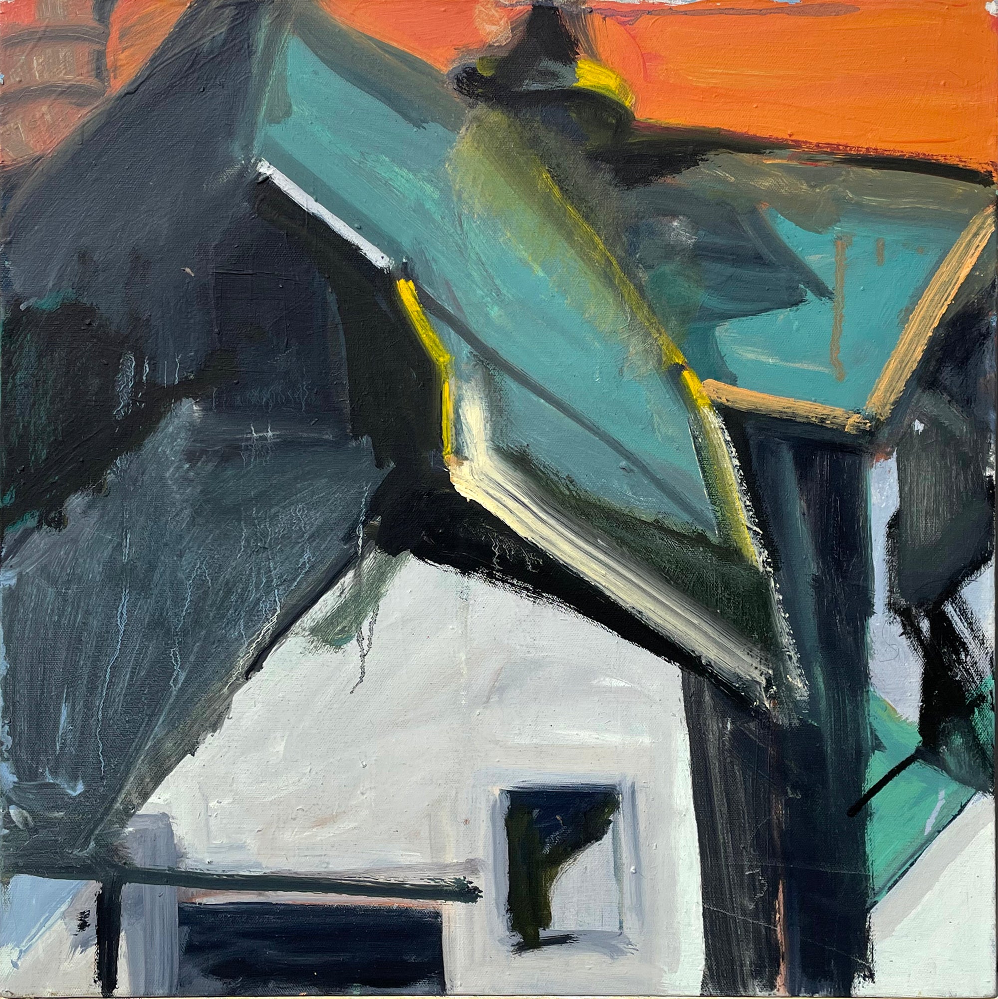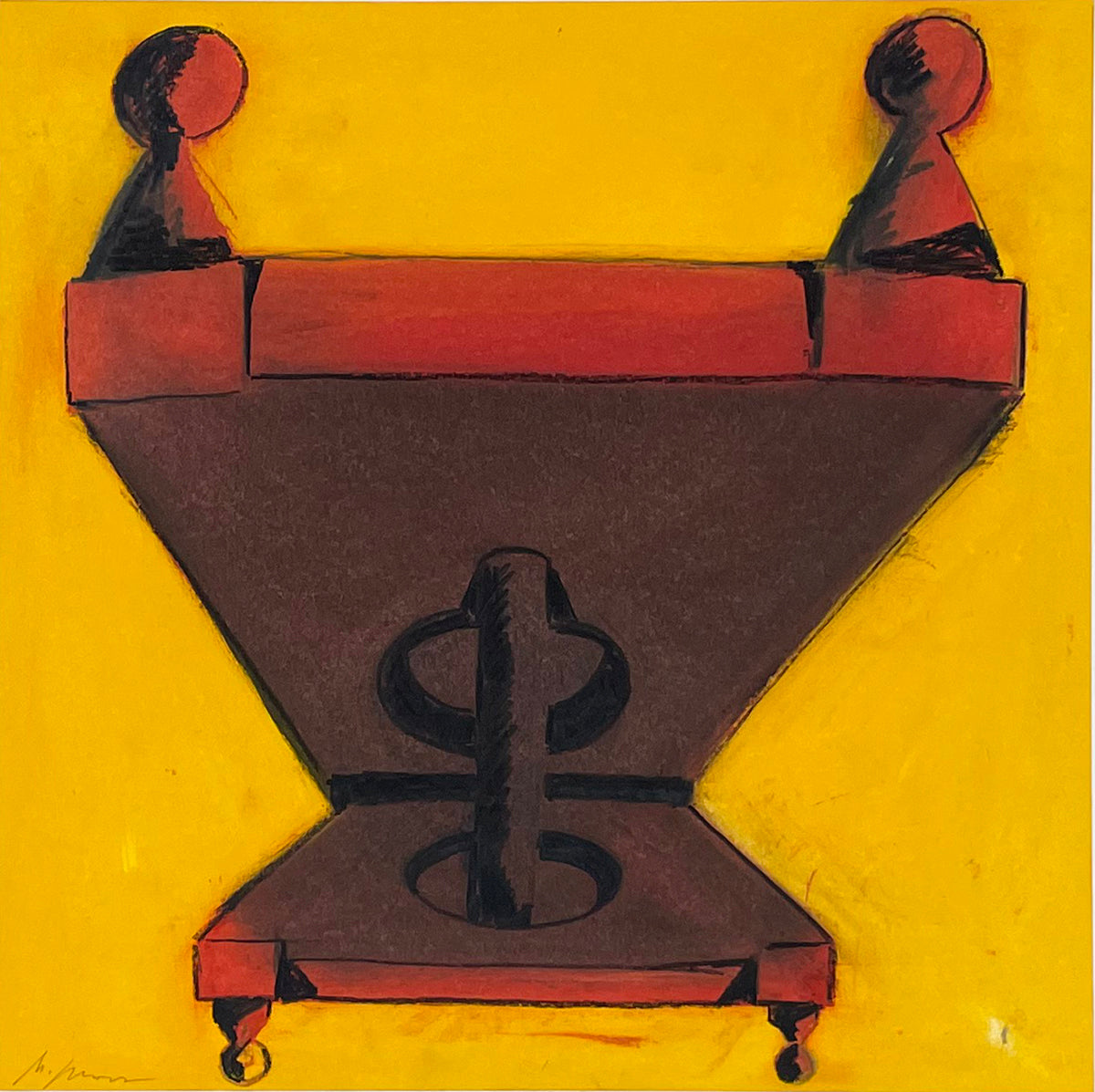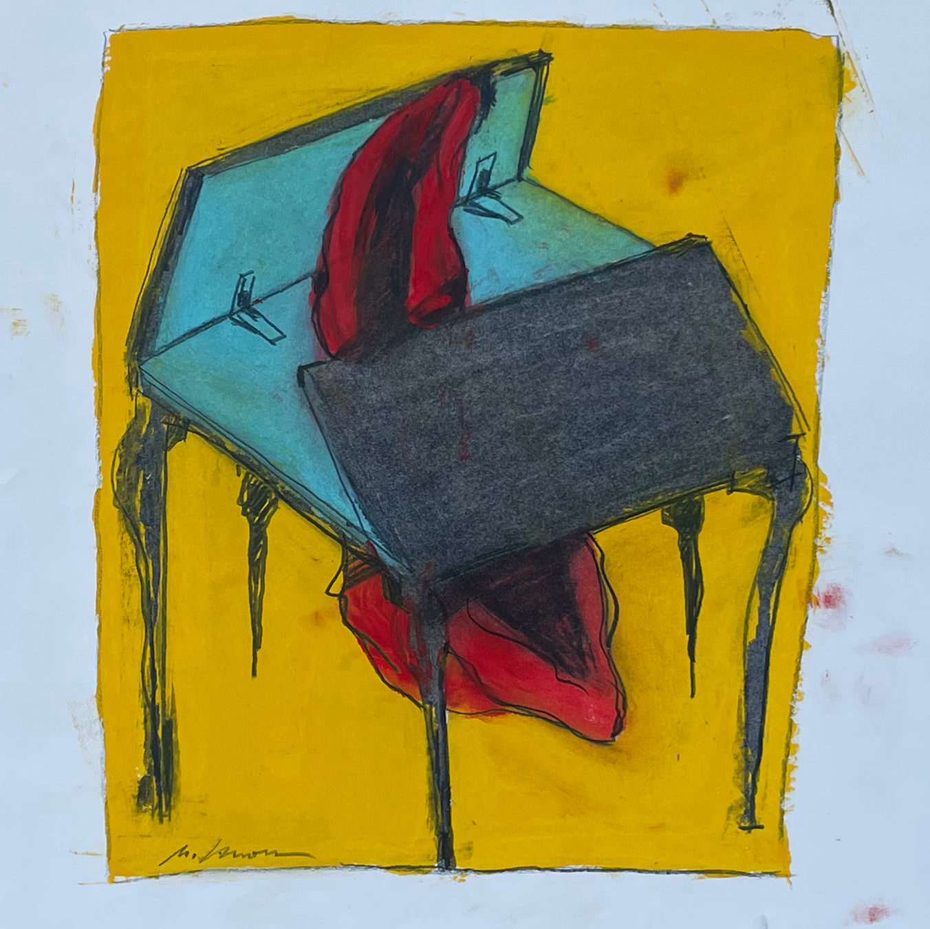 Moss’s career as a painter has taken a circuitous route: art restorer, photographer, illustrator, theatrical designer, animator, author. Eight years as a patinator at The Metropolitan Museum of Art Conservation Department resulted in a travel grant to study medieval polychrome statuary and frescos throughout Europe. To support his painting he free-lanced for the Op-ed pages of The New York Times and The Washington Post, consequently leading to a 23-year contract with The Washington Post Writers Group as a nationally syndicated political satirist. A collection of his drawings was subsequently published, The Art and Politics of Geoffrey Moss, forwarded by CBS’s Dan Rather. His captionless iconic drawings, MOSSPRINTS “…an artist’s take on global politics” gained recognition with three Pulitzer-Prize nominations including one for his series on the Watergate Scandal and another for his 9/11 series, recognized with a solo exhibition at Washington D.C.’s Newseum.