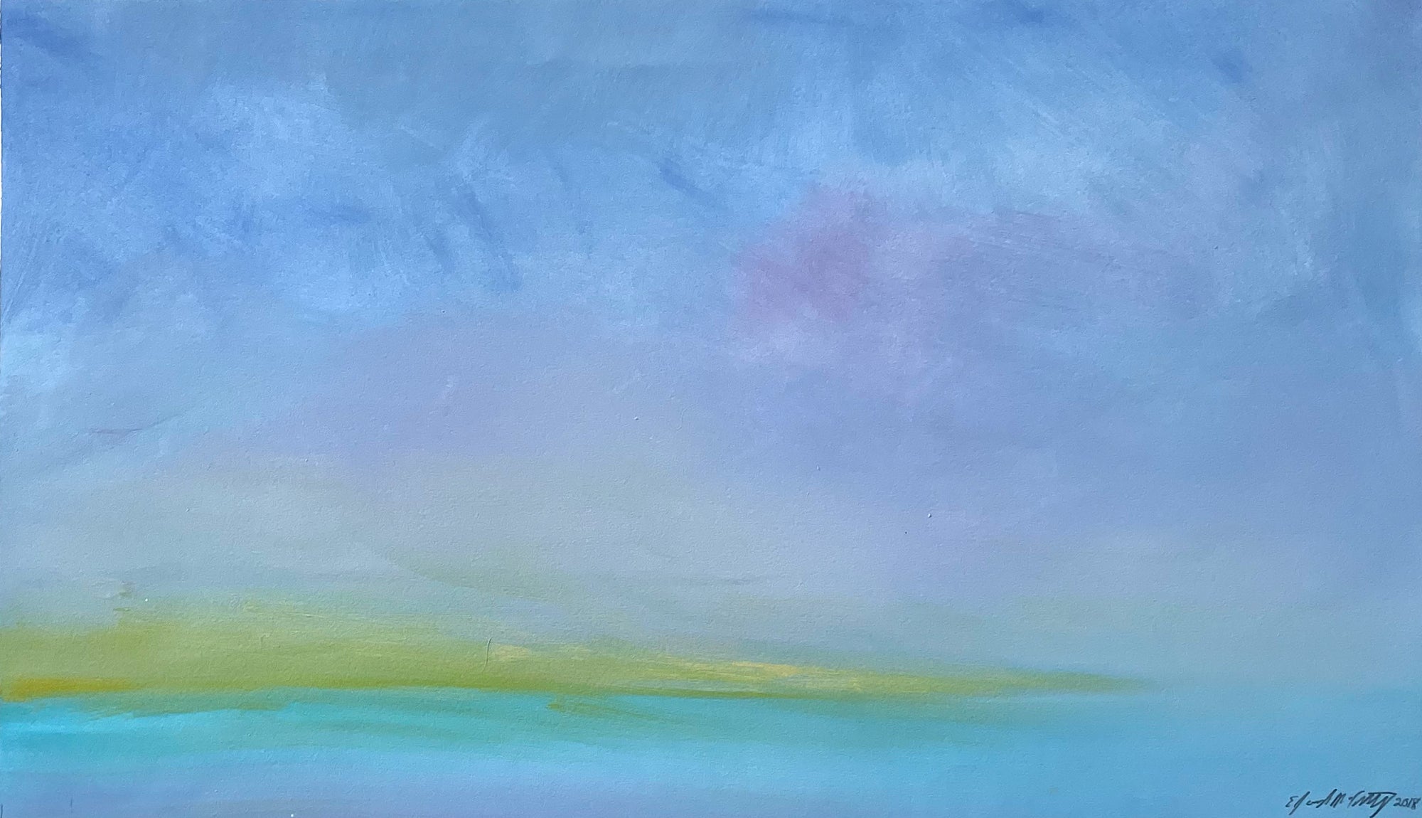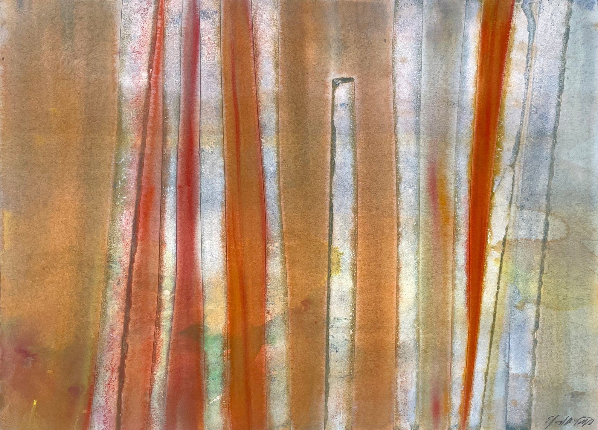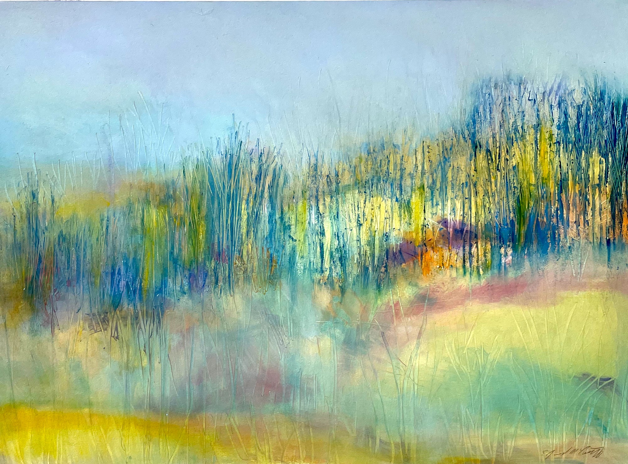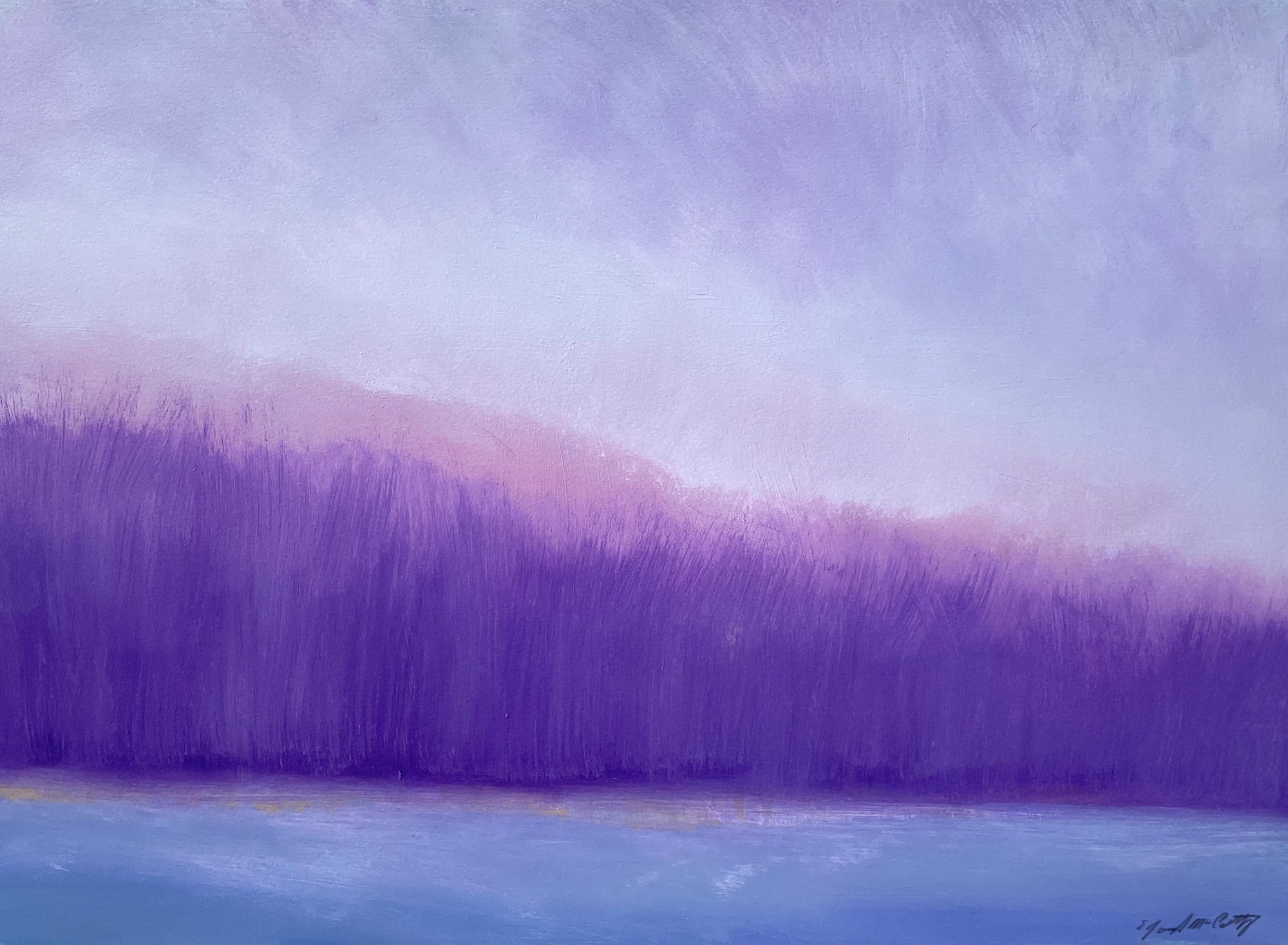 E. Joseph McCarthy is a Buckland, Massachusetts native who lived for twenty years in New Jersey before returning to Greenfield in 1972. Since that time he has been a full-time artist whose work has focused on color. His large abstract oil canvases fill the eye with luminous yellows, oranges, reds, and balanced with cool blues, greens and purples, all edged in softness.