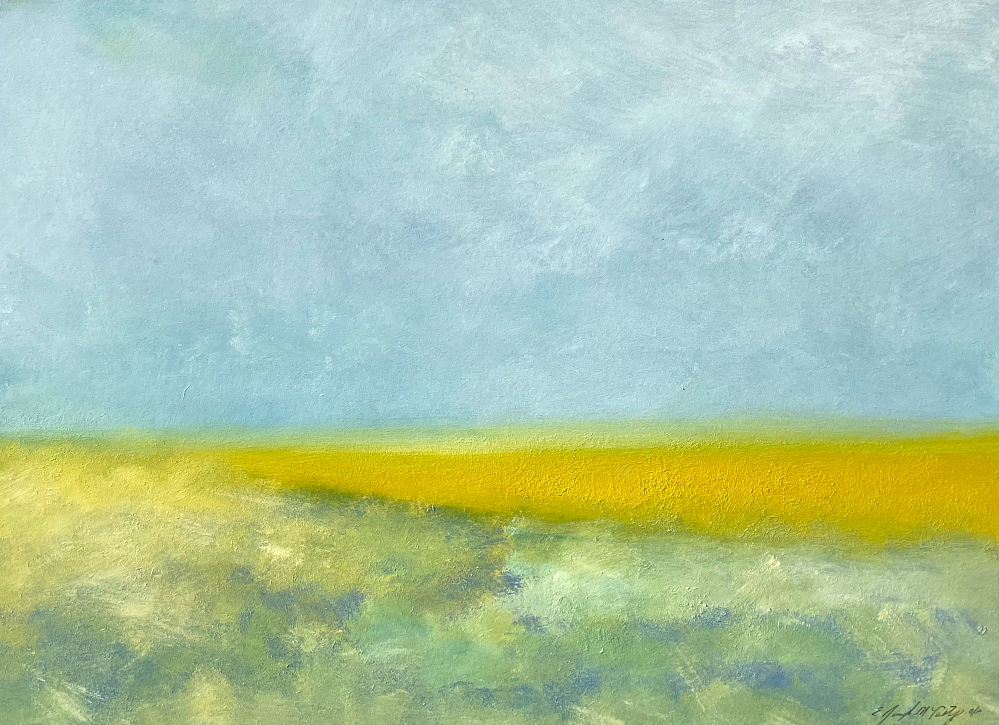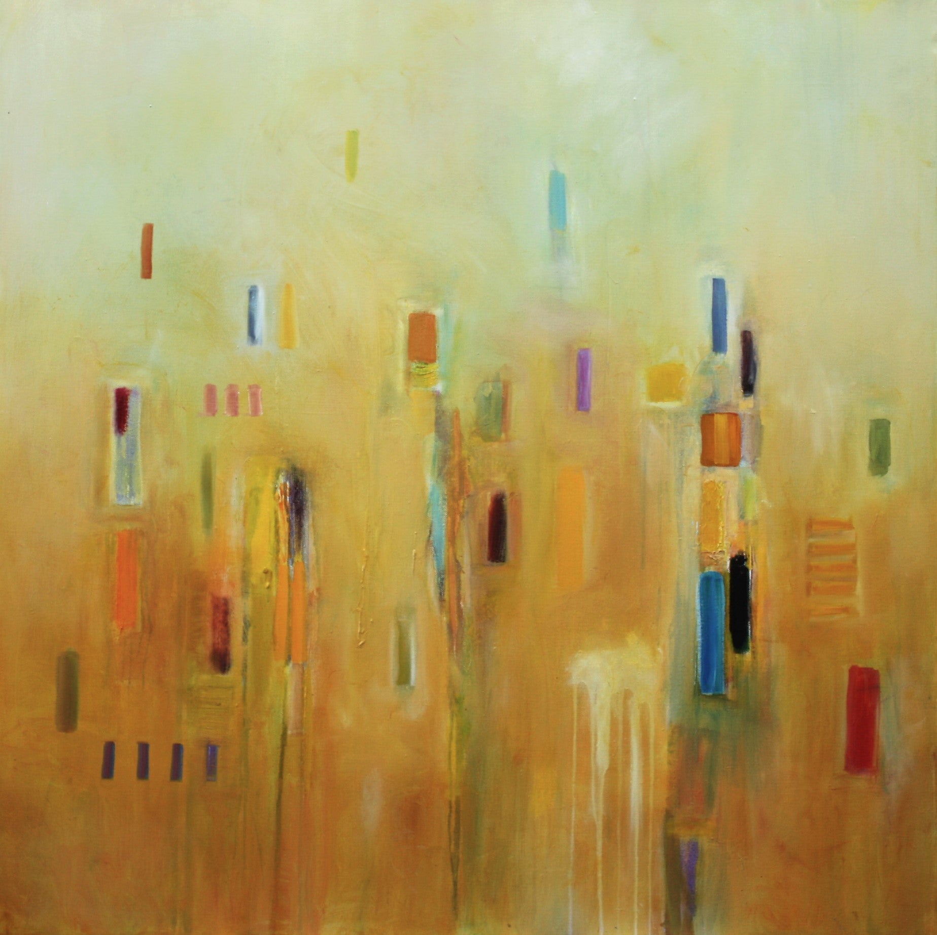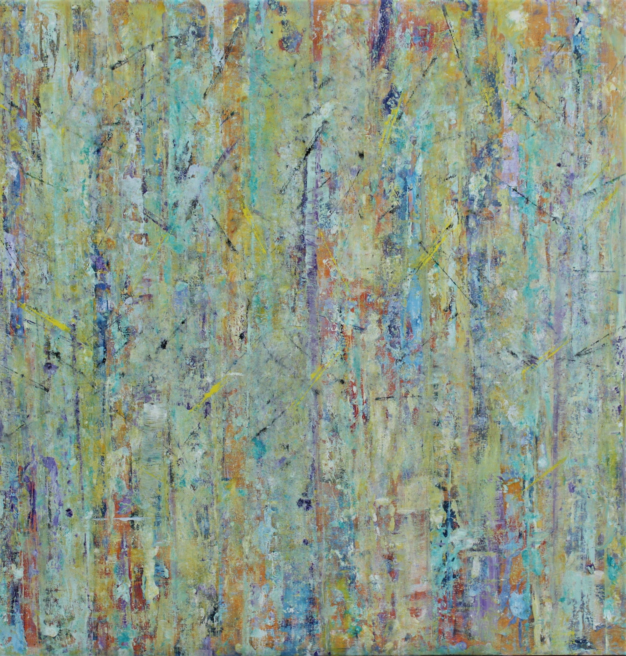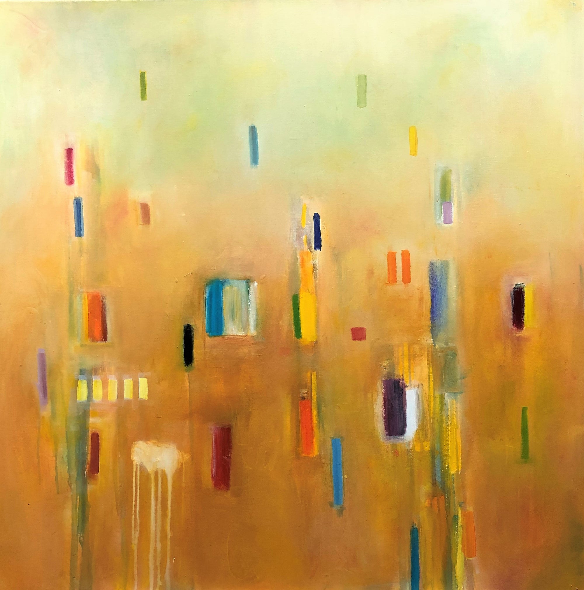 E. Joseph McCarthy is a Buckland, Massachusetts native who lived for twenty years in New Jersey before returning to Greenfield in 1972. Since that time he has been a full-time artist whose work has focused on color. His large abstract oil canvases fill the eye with luminous yellows, oranges, reds, and balanced with cool blues, greens and purples, all edged in softness.