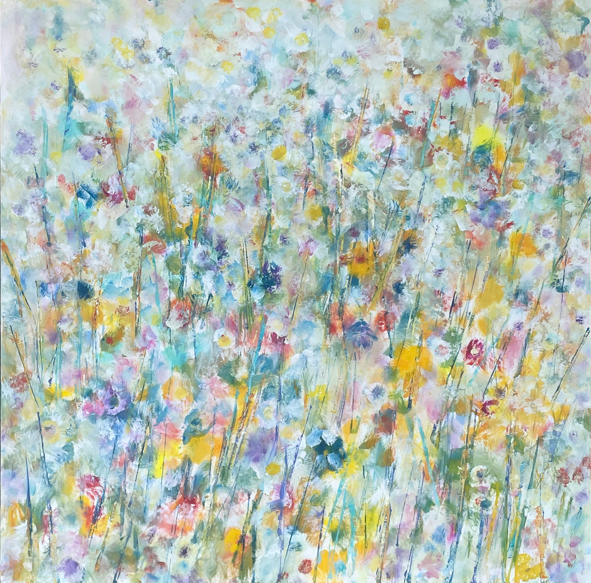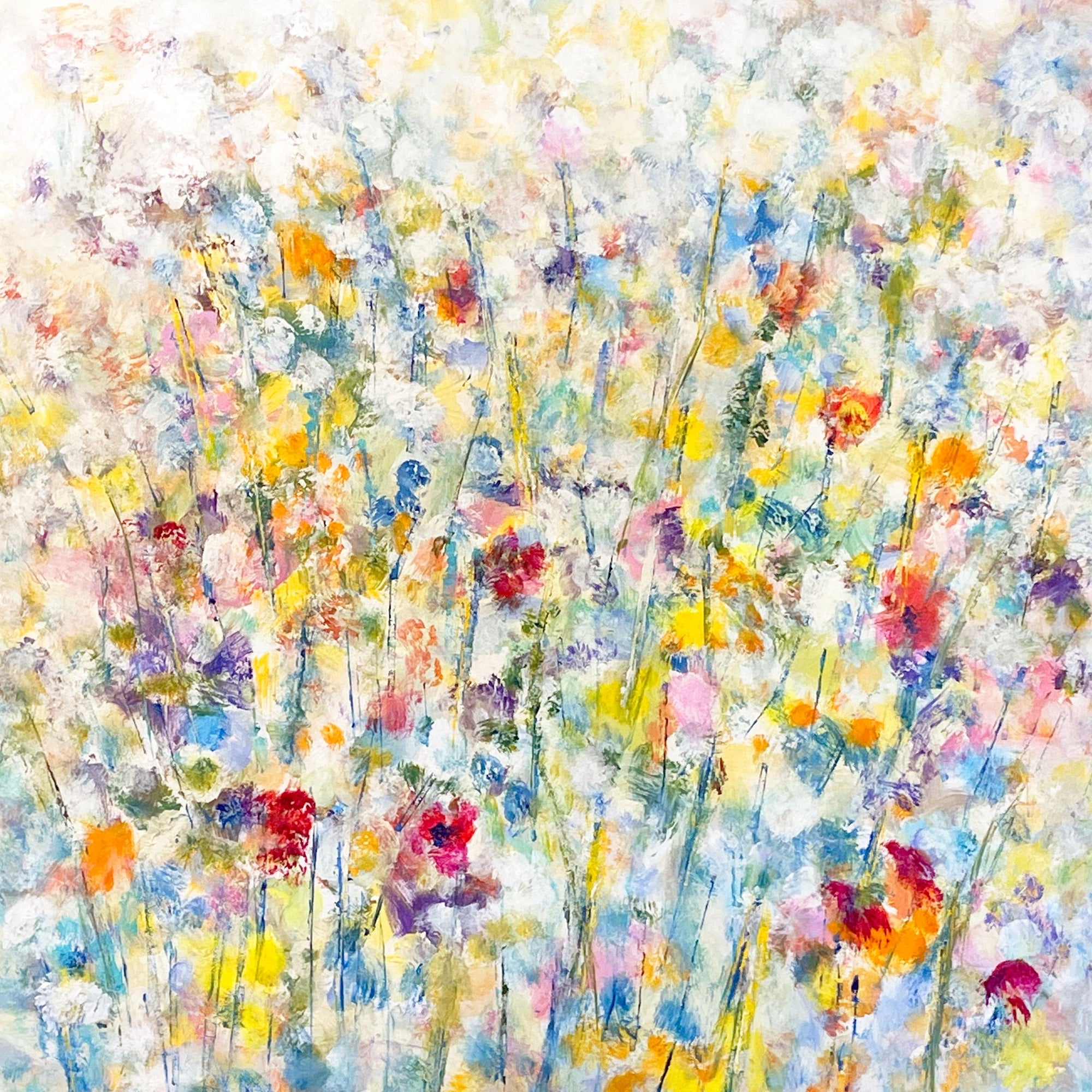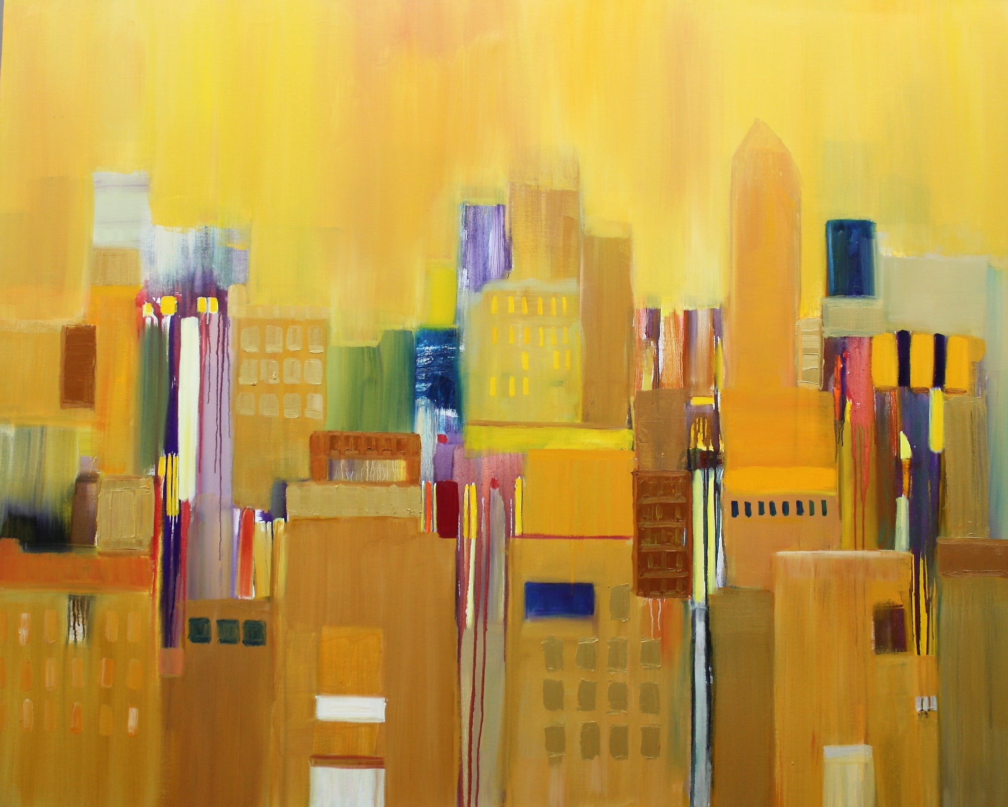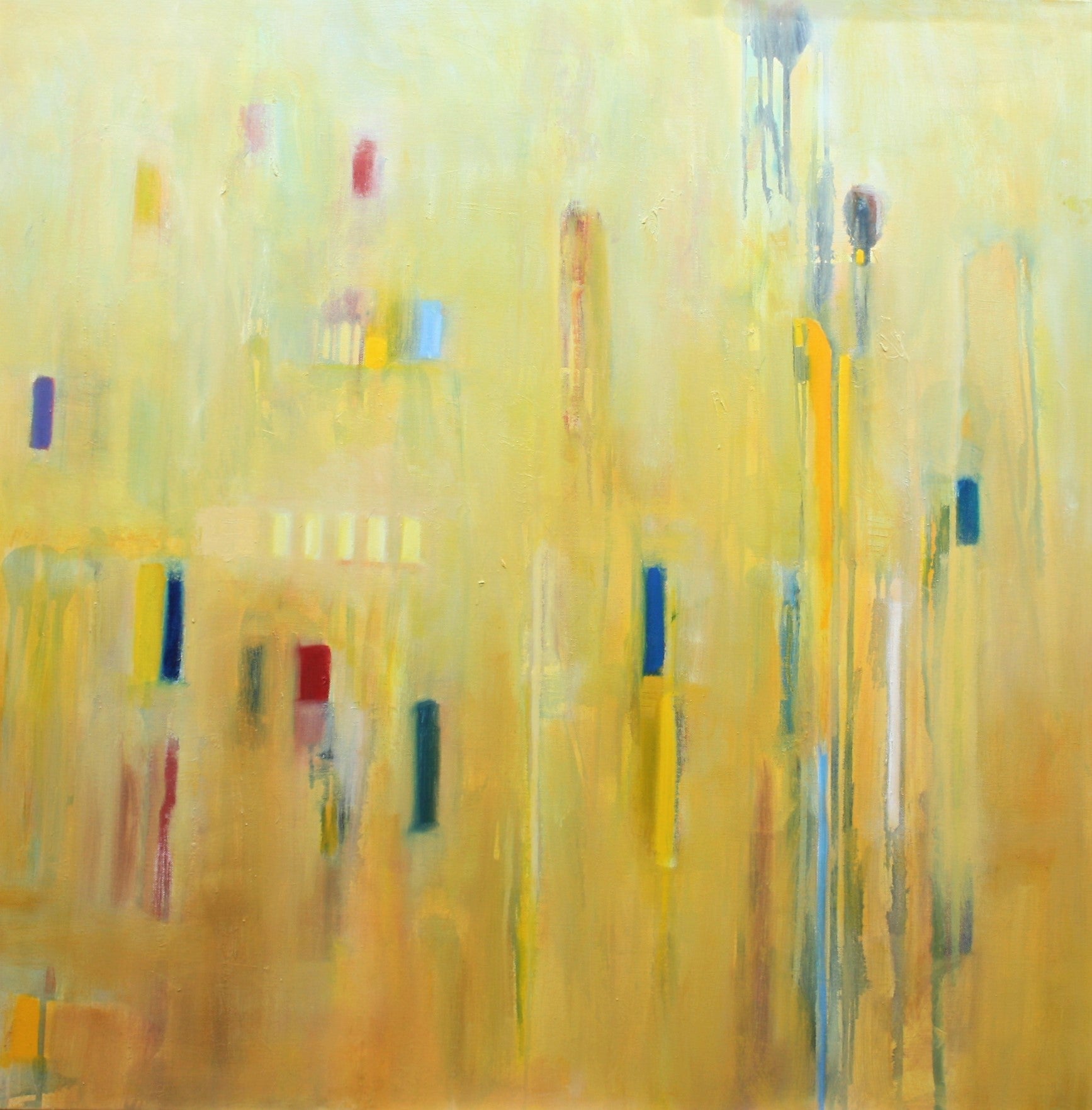 E. Joseph McCarthy is a Buckland, Massachusetts native who lived for twenty years in New Jersey before returning to Greenfield in 1972. Since that time he has been a full-time artist whose work has focused on color. His large abstract oil canvases fill the eye with luminous yellows, oranges, reds, and balanced with cool blues, greens and purples, all edged in softness.