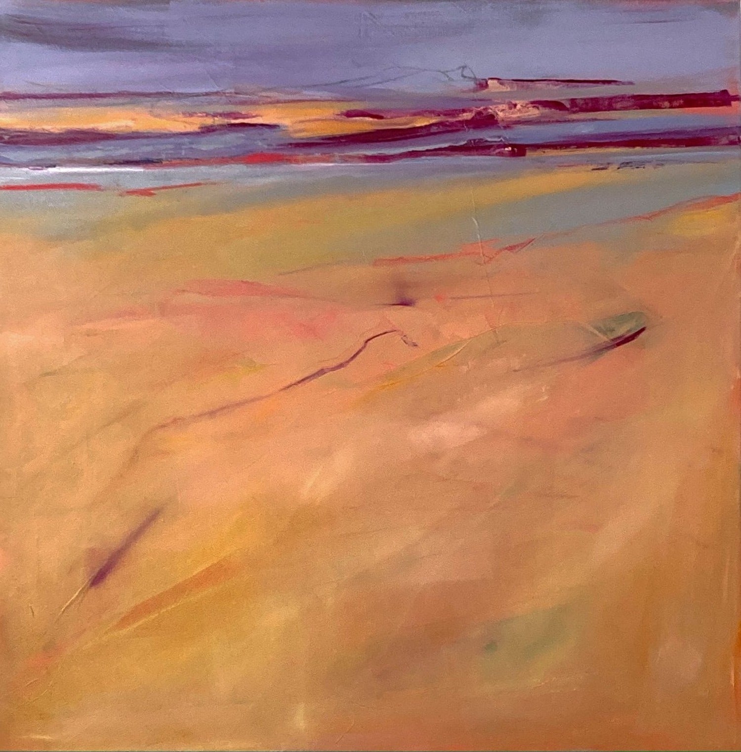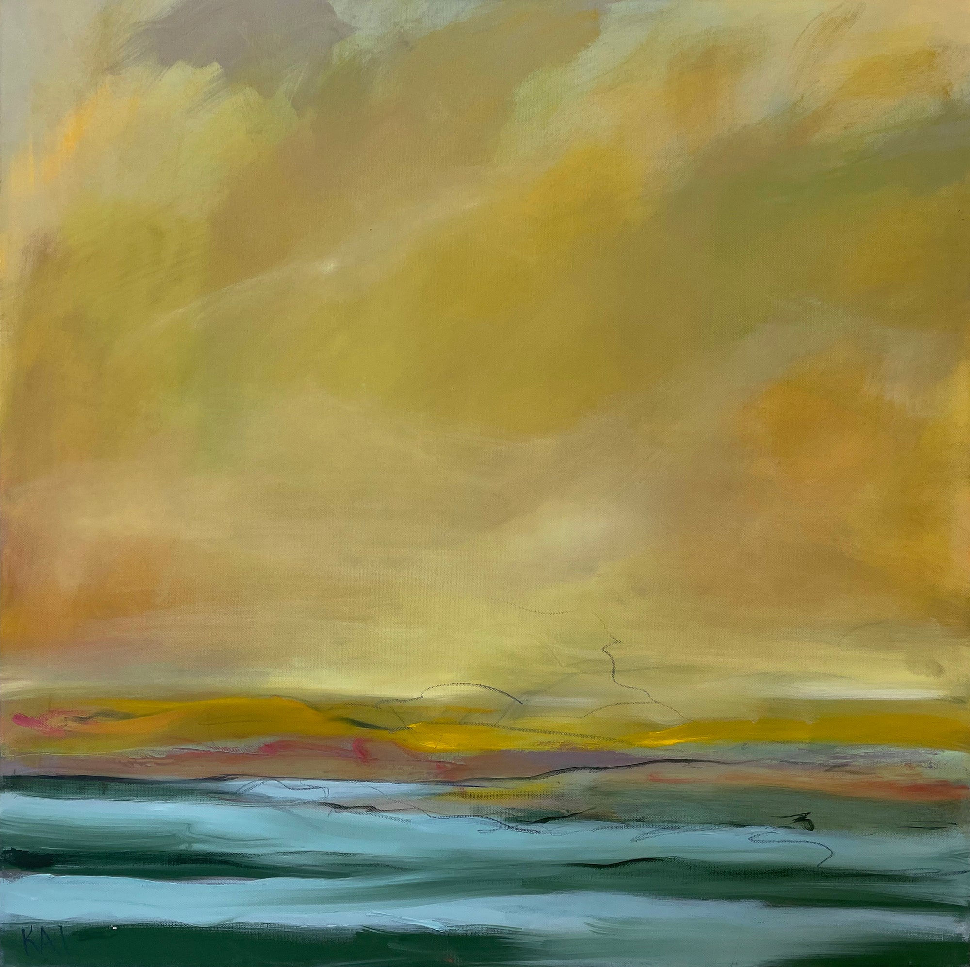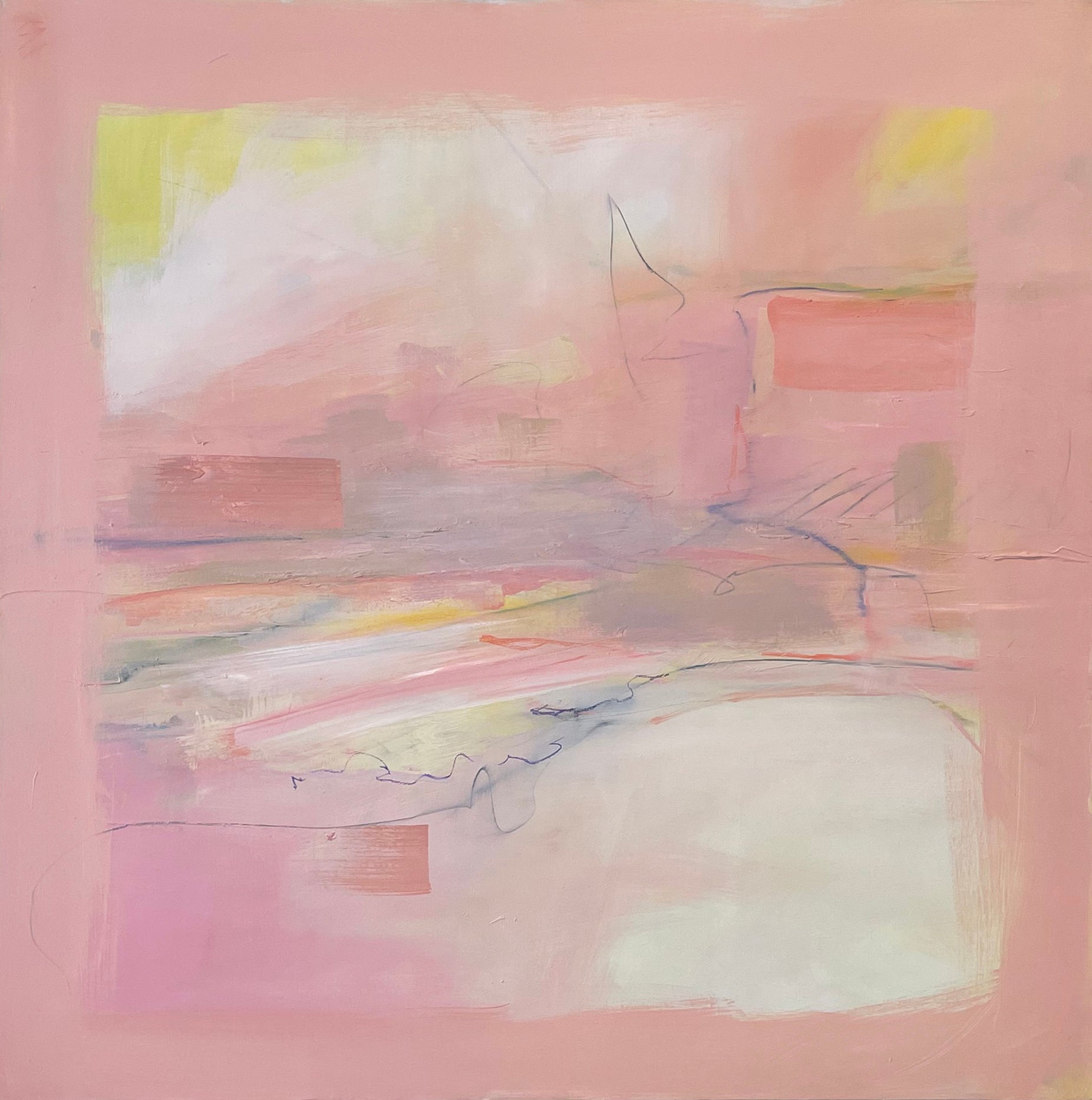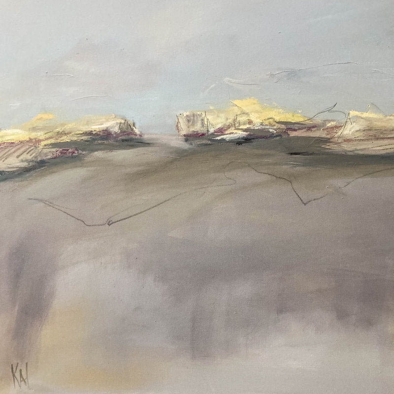 “One of the major influences in my work comes from my connection to Buddhism and a desire to create and share a space that is not filled with commentary, or story line. Actually, I’m trying to do the opposite… to create space that allows the mind to rest, or at least pause. To perceive color and forms without other information. Letting abstraction open boundaries. Recently the abstract paintings have been influenced by my reconnection to jazz and especially Miles Davis. Space, quiet then intensity of notes and sound in contrast”. -Karen Iglehart
