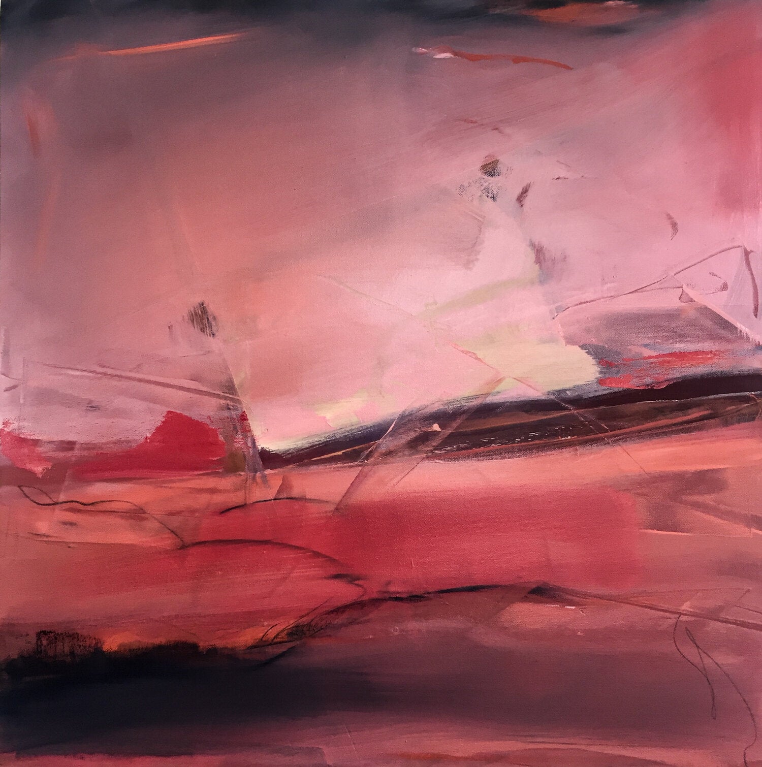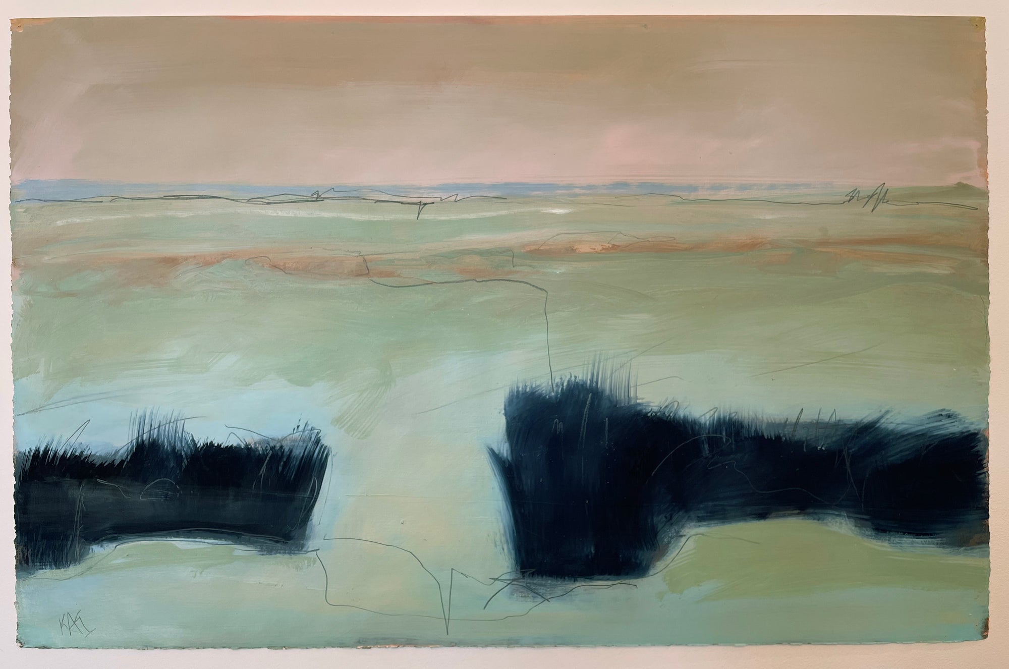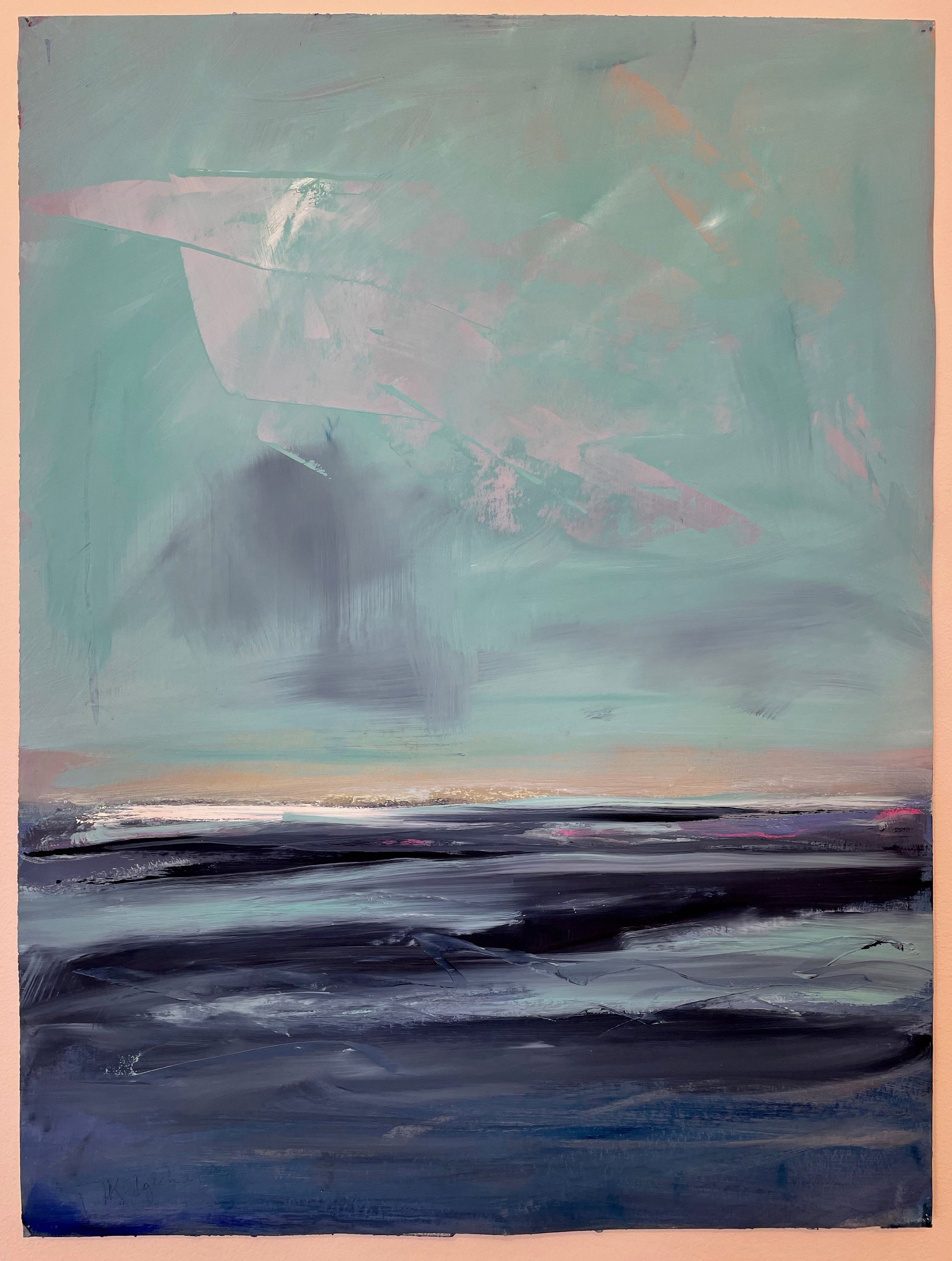 “One of the major influences in my work comes from my connection to Buddhism and a desire to create and share a space that is not filled with commentary, or story line. Actually, I’m trying to do the opposite… to create space that allows the mind to rest, or at least pause. To perceive color and forms without other information. Letting abstraction open boundaries. Recently the abstract paintings have been influenced by my reconnection to jazz and especially Miles Davis. Space, quiet then intensity of notes and sound in contrast”. -Karen Iglehart