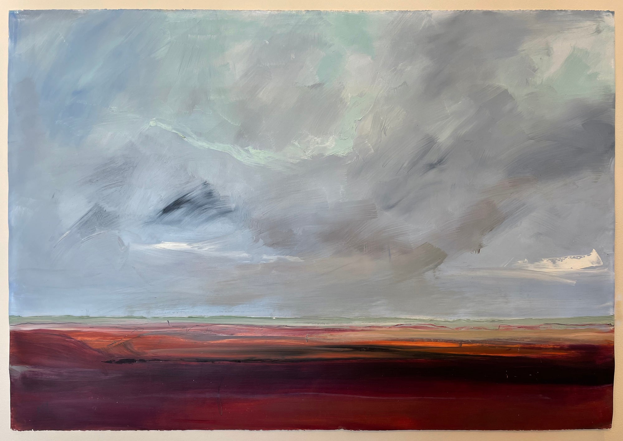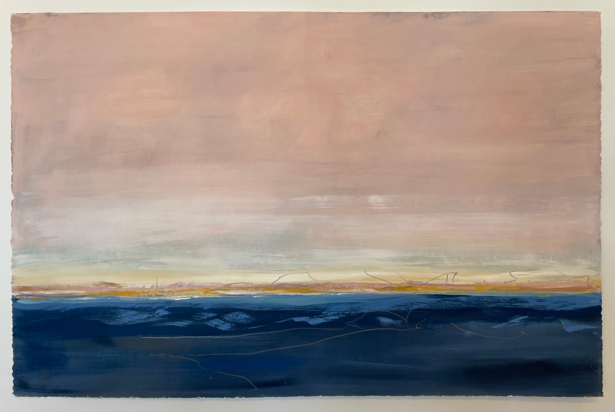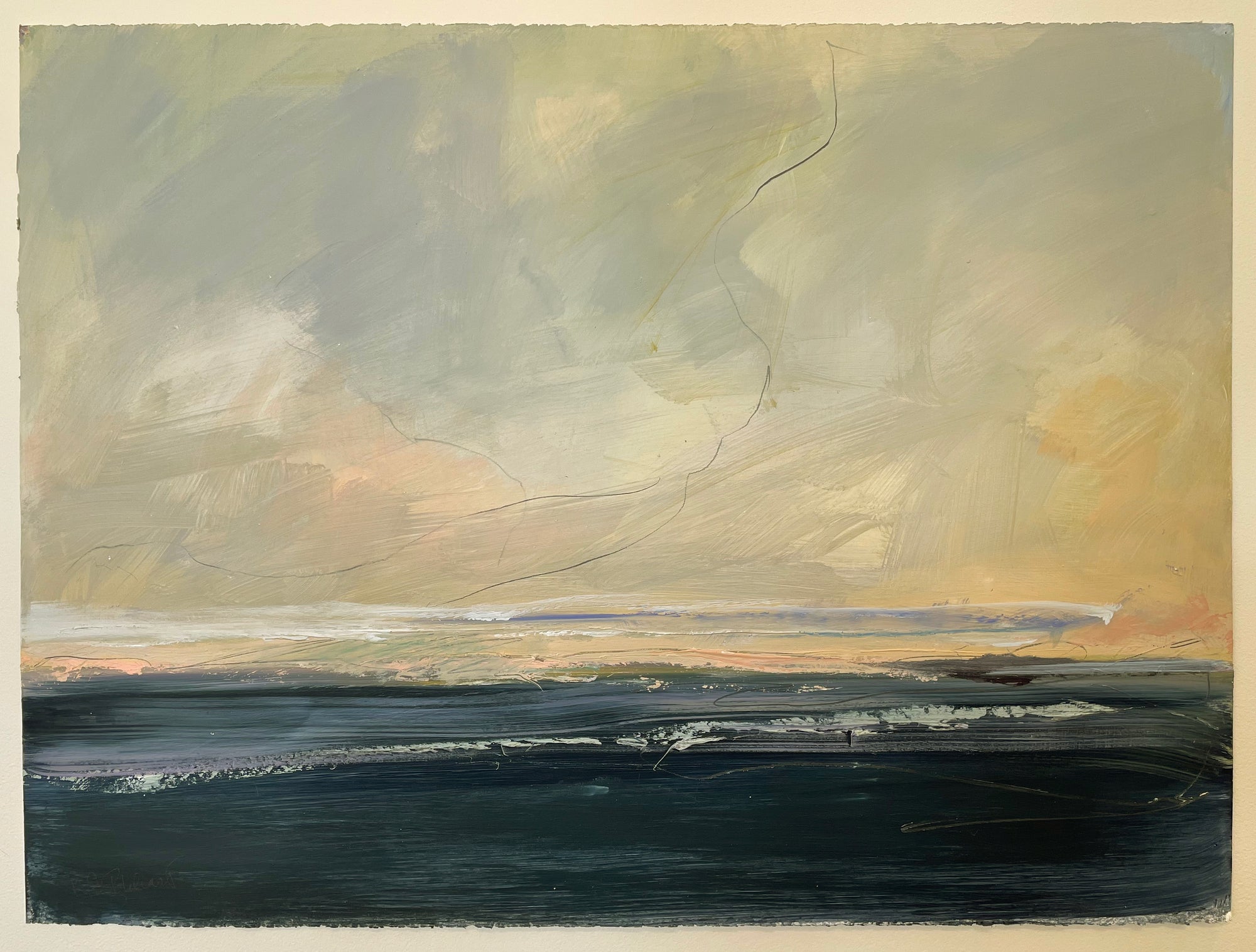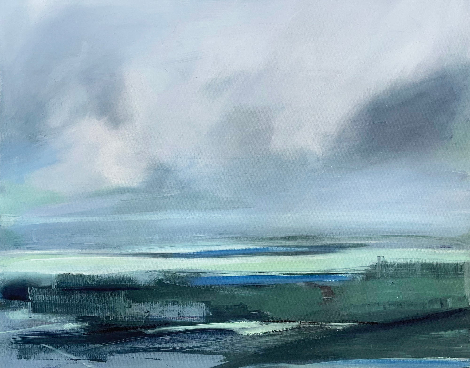 “One of the major influences in my work comes from my connection to Buddhism and a desire to create and share a space that is not filled with commentary, or story line. Actually, I’m trying to do the opposite… to create space that allows the mind to rest, or at least pause. To perceive color and forms without other information. Letting abstraction open boundaries. Recently the abstract paintings have been influenced by my reconnection to jazz and especially Miles Davis. Space, quiet then intensity of notes and sound in contrast”. -Karen Iglehart